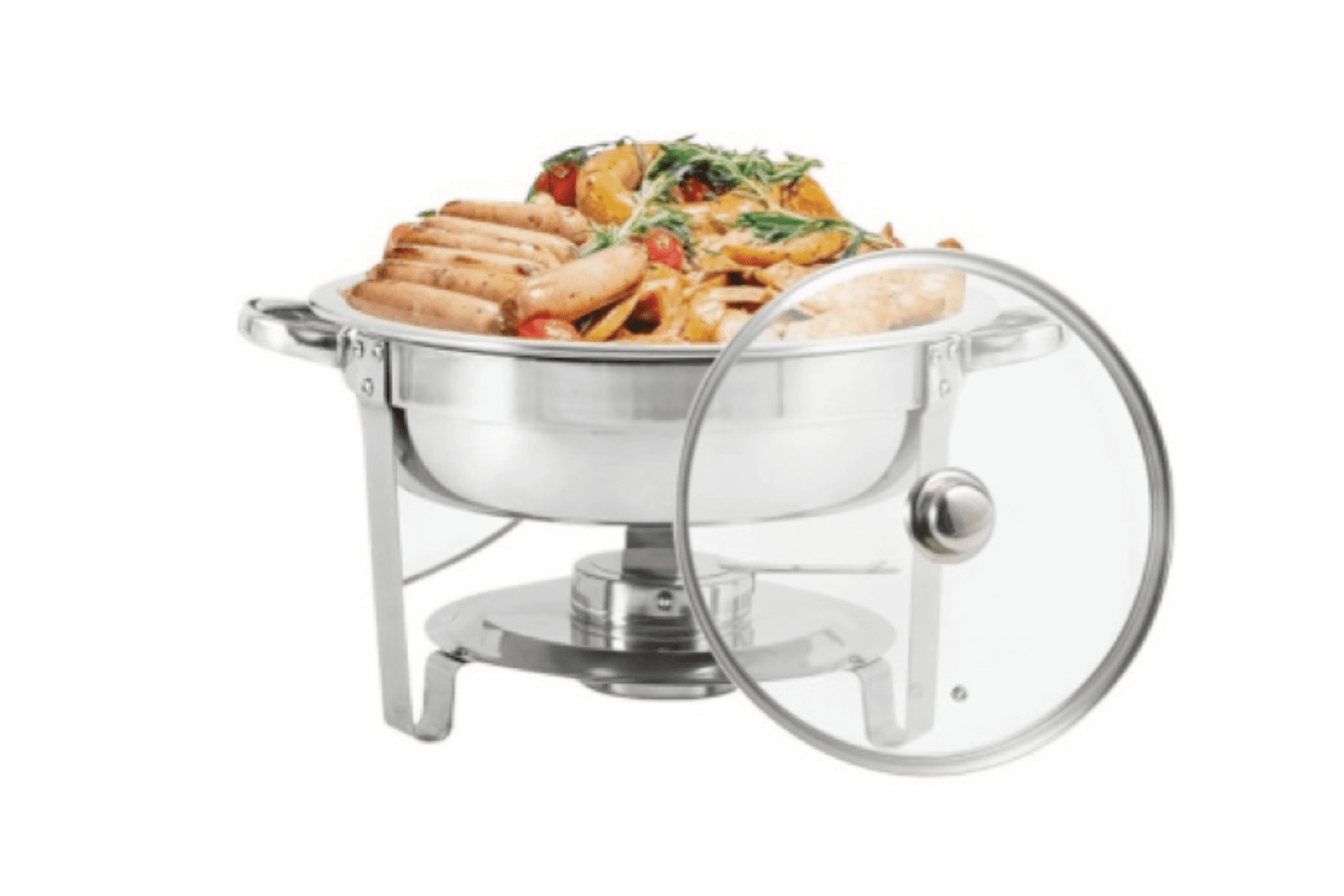 Introducing our Round Chafing Dish with Glass, designed for seamless catering experiences. This elegant buffetware essential not only serves food efficiently but also enhances presentation, making it ideal for corporate events, weddings, and upscale gatherings.